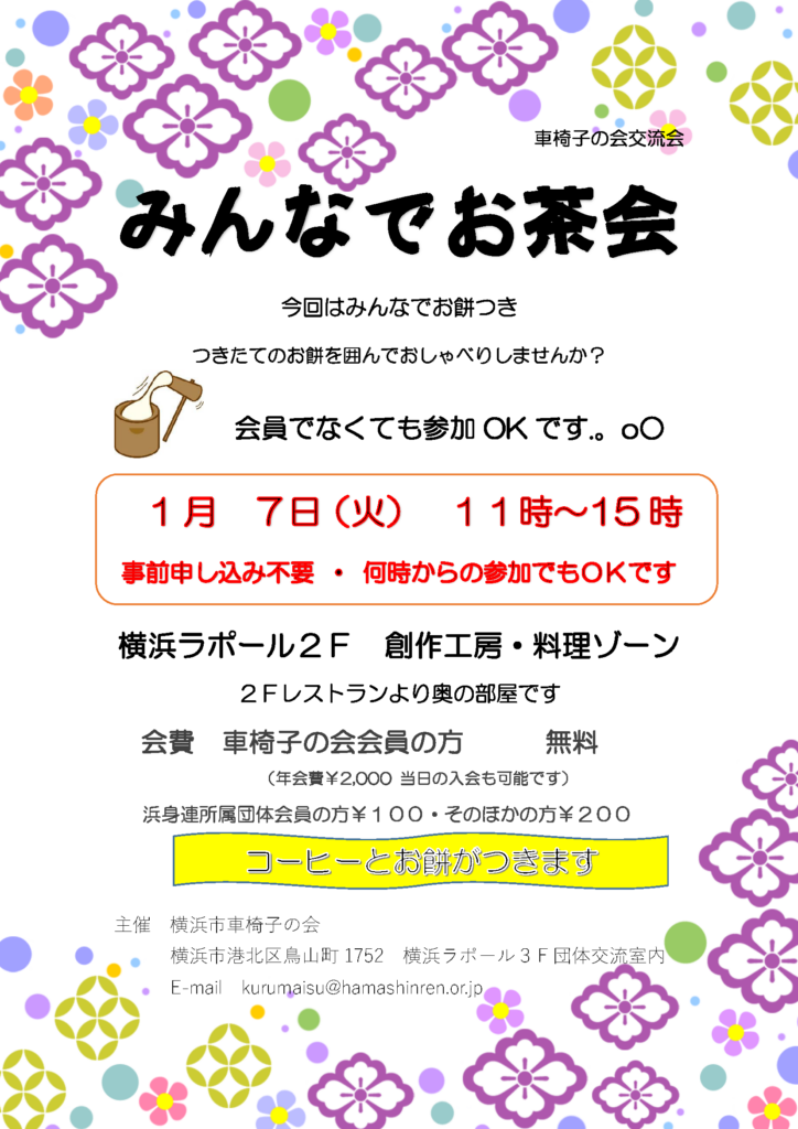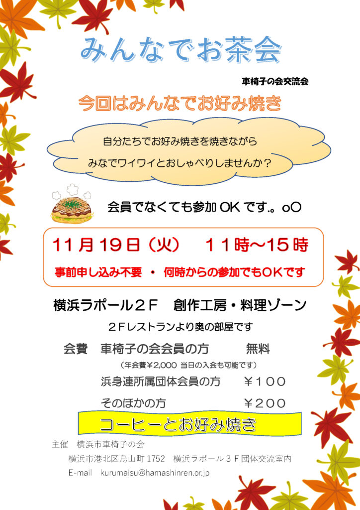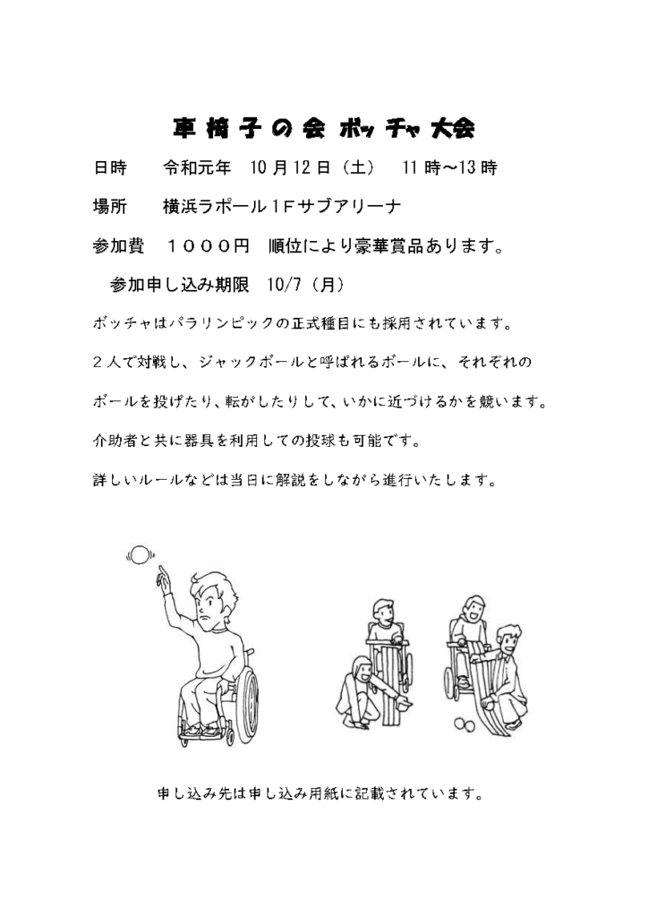 - 事前申し込みの会員は車椅子の会でお弁当(無料)を用意します。